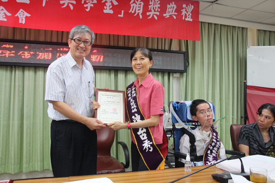首頁 > 活動花絮> 熱愛生命獎學金2015/10/15高雄師範大學多障天使曾靖芳獲獎