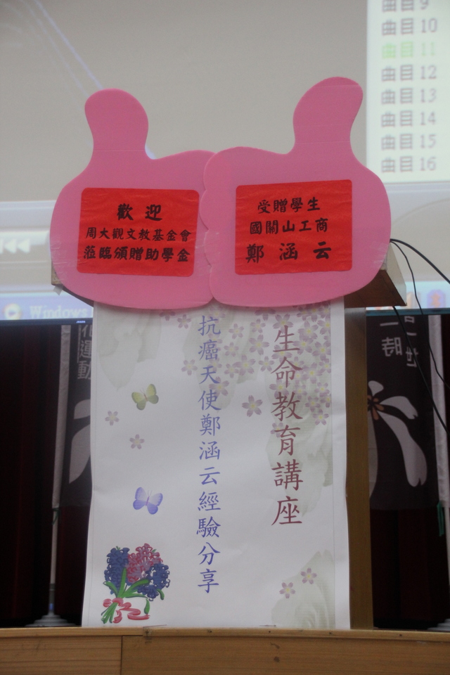 首頁 > 活動花絮> 抗癌圓夢助學金2015/09/30關山工商鄭涵云